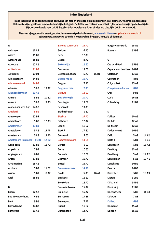 Bevat de overzichtskaart van Nederland en alle 12 provinciekaarten. Met handige index voor de kinderen. Geniet.